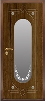 Коттеджная входная дверь МДФ с зеркалом и натуральным шпоном с ковкой и стеклом